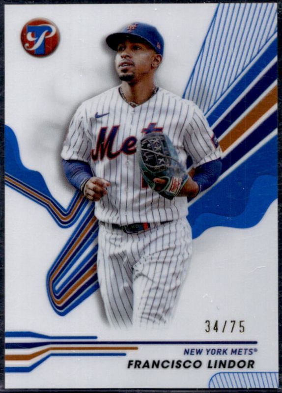The Francisco Lindor 2024 Topps Pristine #162 Blue Refractor /75 card is 1 of 33 Francisco Lindor's card variations in the 2024 Topps Pristine set being tracked by Sports Card Investor, including Base, Pristine Refractor, Refractor, Green Refractor /150, and Pristine Purple Refractor /99.