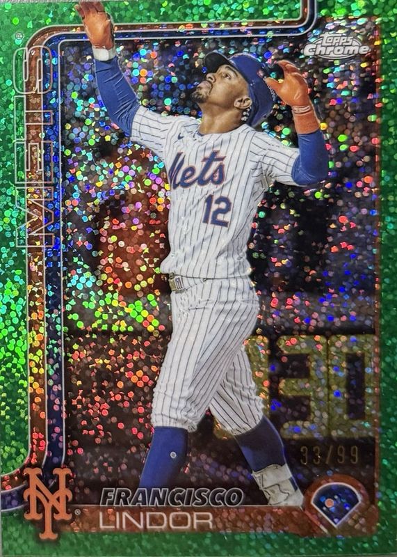 Best Prices Available For Sale of Francisco Lindor 2025 Topps Chrome #170 Image Variation - Green Speckle Refractor /99