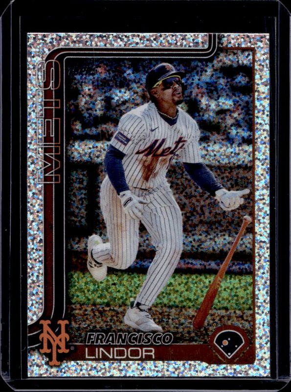 The Francisco Lindor 2025 Topps #350 Silver Crackle Foilboard card is 1 of 244 Francisco Lindor's card variations in the 2025 Topps set being tracked by Sports Card Investor, including Base, Aqua Holo Foil, Diamante Foil, Holo Foil, and Pink Diamante Foil.