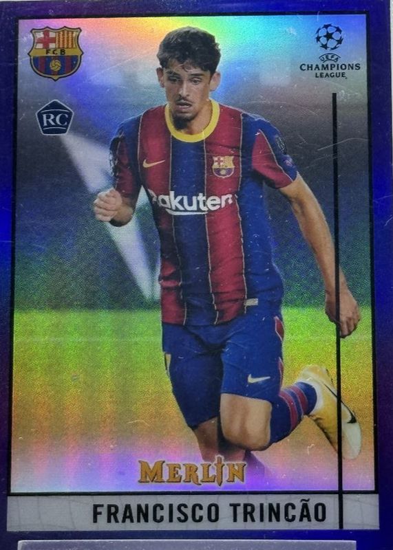 The Francisco Trincao 2020 Topps Merlin Chrome UEFA Champions League #62 Purple Refractor /299 Rookie card in Raw condition has not changed in price in the last 30 days and was last sold for $1.53 .