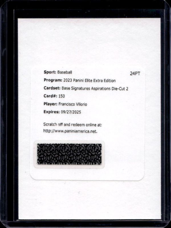 Francisco Vilorio 2023 Elite Extra Edition #150 Aspirations die-cut Signatures /76 RAW Price Guide