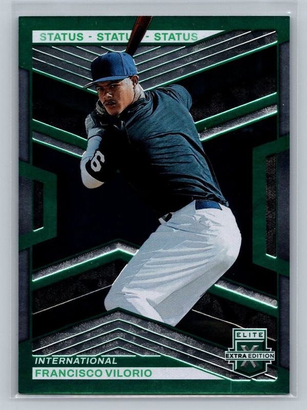 The Francisco Vilorio 2023 Elite Extra Edition #150 Status Green /499 card is 1 of 39 Francisco Vilorio's card variations in the 2023 Elite Extra Edition set being tracked by Sports Card Investor, including Base, Pink, Signatures, Signatures die-cut /399, and Aspirations Blue /349.