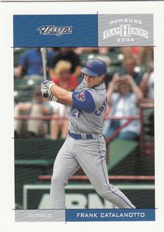 The Frank Catalanotto 2004 Donruss Team Heroes #430 Base card is 1 of 4 Frank Catalanotto's card variations in the 2004 Donruss Team Heroes set being tracked by Sports Card Investor, including Showdown - Bronze /150, Showdown - Silver /50, and Showdown - Gold /10.