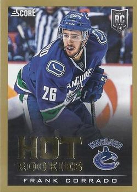 The Frank Corrado 2013 Panini Rookie Anthology #742 2013 Score Update: - Gold card is 1 of 32 Frank Corrado's card variations in the 2013 Panini Rookie Anthology set being tracked by Sports Card Investor, including Purple /1, 2013 Score Update, 2013 Score Update: - Black, 2013 Score Update: Hot Rookies Signatures, and Titanium Update Rookie Gear.