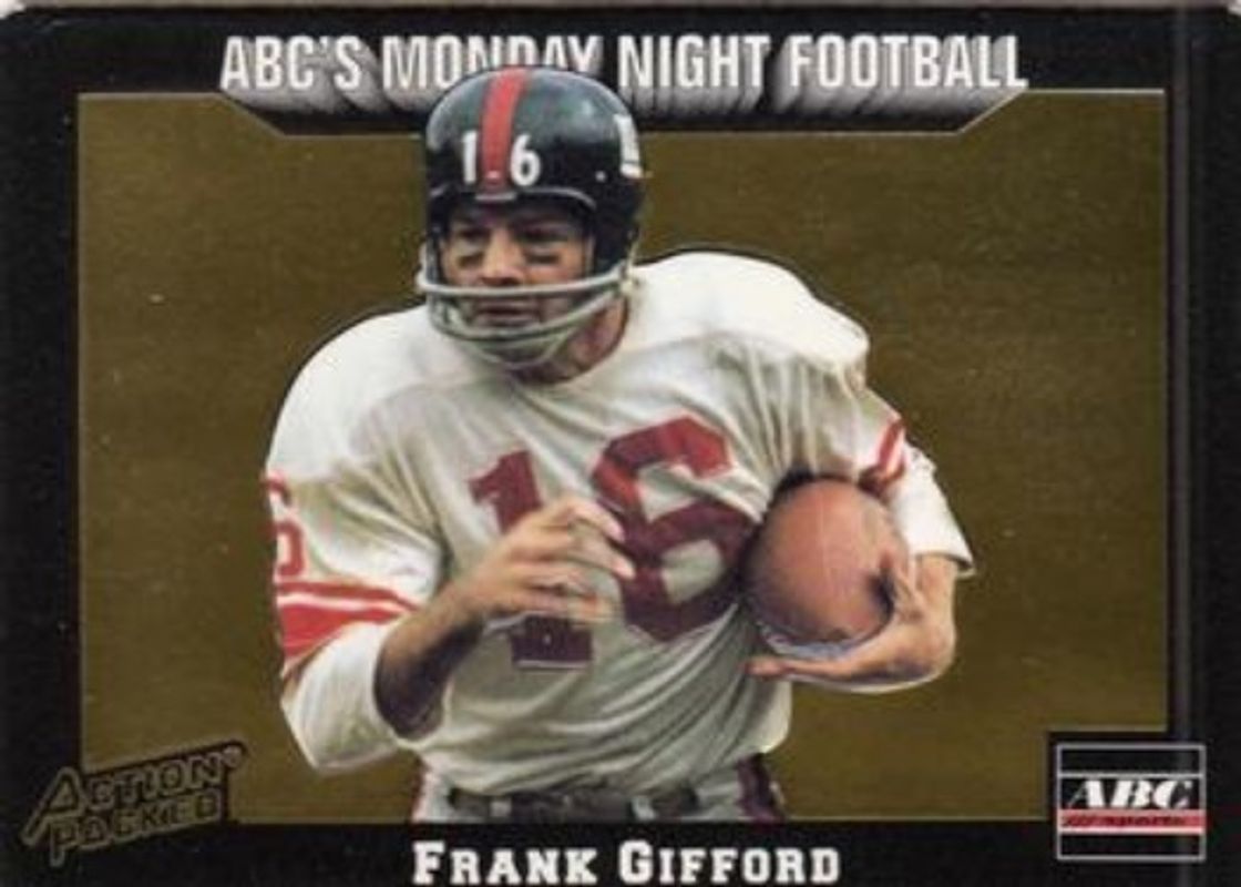 The Frank Gifford 1993 Action Packed Monday Night #80 Base card is 1 of 2 Frank Gifford's card variations in the 1993 Action Packed Monday Night set being tracked by Sports Card Investor, including Mint /250.