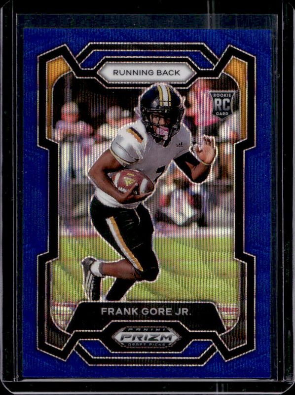 The Frank Gore 2024 Prizm Draft Picks #159 Blue Wave /249 card is 1 of 206 Frank Gore's card variations in the 2024 Prizm Draft Picks set being tracked by Sports Card Investor, including #159 Base, #79 Base, #159 Green, #79 Green, and #79 Purple Wave.