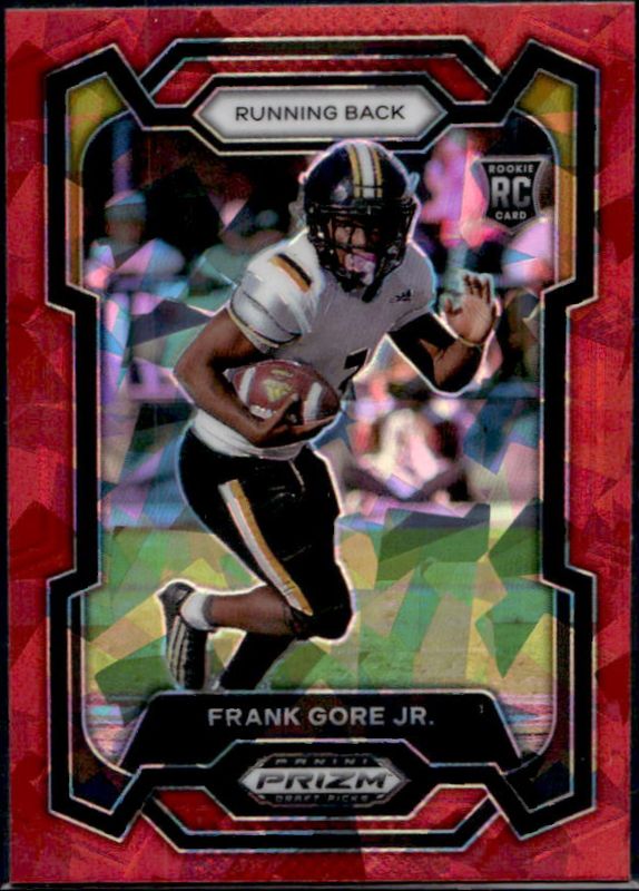 The Frank Gore 2024 Prizm Draft Picks #159 Red Ice card is 1 of 206 Frank Gore's card variations in the 2024 Prizm Draft Picks set being tracked by Sports Card Investor, including #159 Base, #79 Base, #159 Green, #79 Green, and #79 Purple Wave.