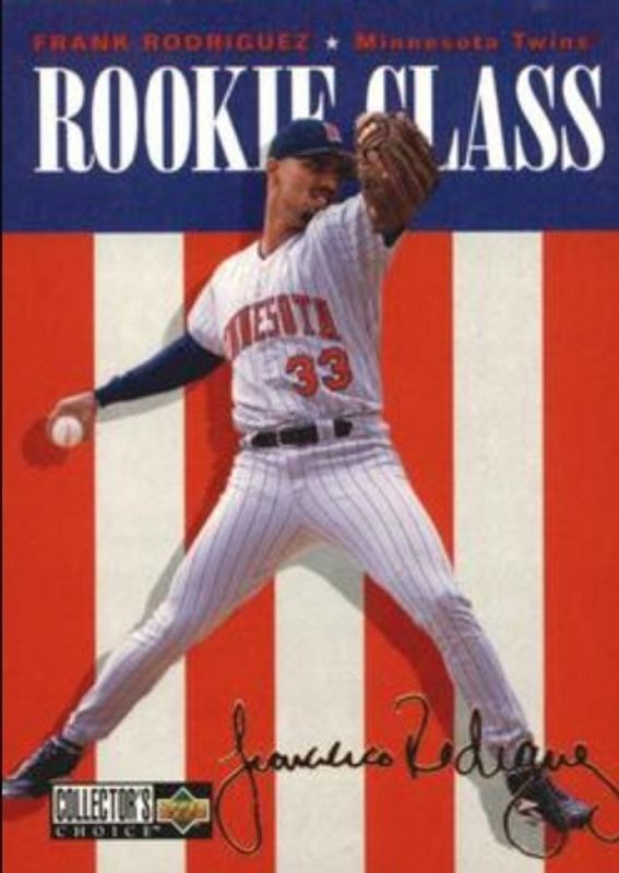 The Frank Rodriguez 1996 Upper Deck Collector's Choice #25 Gold Signatures Rookie card is 1 of 3 Frank Rodriguez's card variations in the 1996 Upper Deck Collector's Choice set being tracked by Sports Card Investor, including Base, and Silver Signatures.