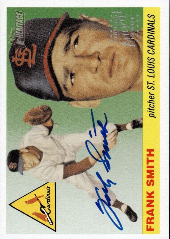 This card is 1 of 2 Frank Smith's card variations in the 2004 Topps Heritage set being tracked by Sports Card Investor, including Real One Autographs - Red Ink /55.