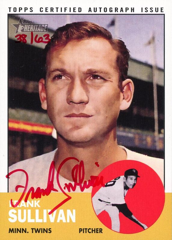 This card is 1 of 3 Frank Sullivan's card variations in the 2012 Topps Heritage set being tracked by Sports Card Investor, including 50th Anniversary Buybacks, and Real One Autographs.