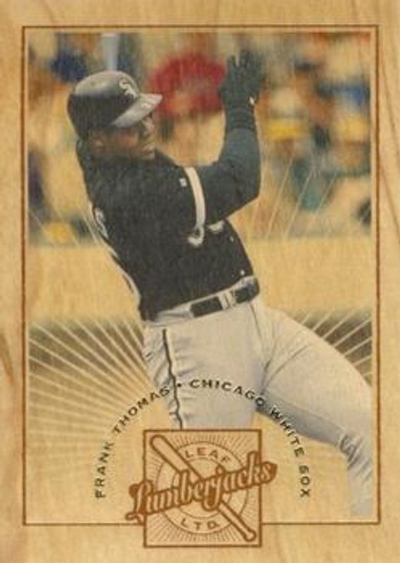 The Frank Thomas 1996 Leaf Limited #4 Lumberjacks /5000 card is 1 of 5 Frank Thomas' card variations in the 1996 Leaf Limited set being tracked by Sports Card Investor, including Base, Gold, Pennant Craze /2500, and Lumberjacks - Black /500.