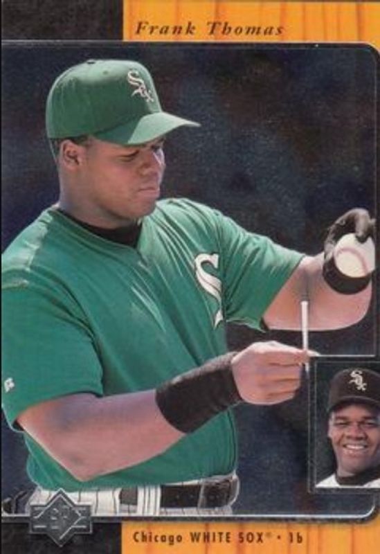 The Frank Thomas 1996 SP #60 Base card is 1 of 7 Frank Thomas' card variations in the 1996 SP set being tracked by Sports Card Investor, including All Star Game Promos, Baseball Heroes, Marquee Matchups, Marquee Matchups die-cut, and Special FX.