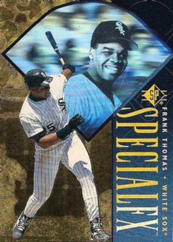 The Frank Thomas 1996 SP #35 Special FX card is 1 of 7 Frank Thomas' card variations in the 1996 SP set being tracked by Sports Card Investor, including Base, All Star Game Promos, Baseball Heroes, Marquee Matchups, and Marquee Matchups die-cut.