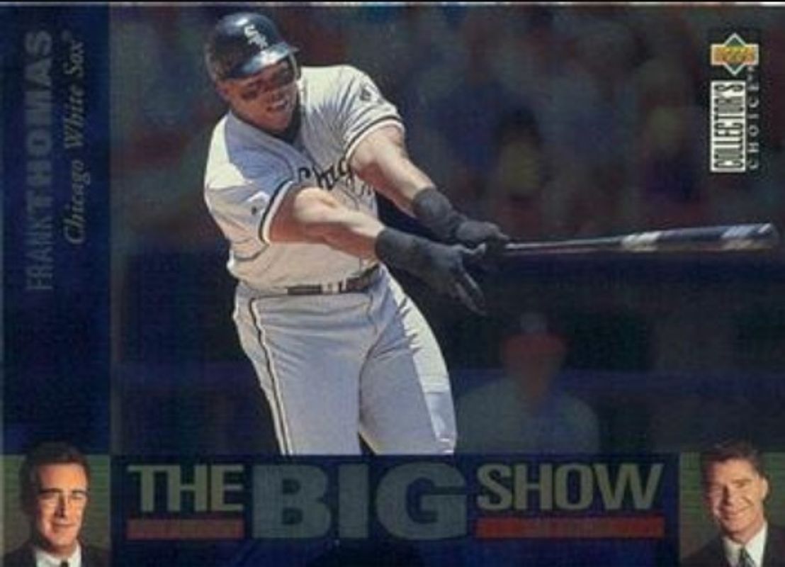 The Frank Thomas 1997 Upper Deck Collector's Choice #16 The Big Show card is 1 of 24 Frank Thomas' card variations in the 1997 Upper Deck Collector's Choice set being tracked by Sports Card Investor, including #328 Base, #300 Base, #10 All Star Connection, #10 Big Shots, and #10 Big Shots 5x7.