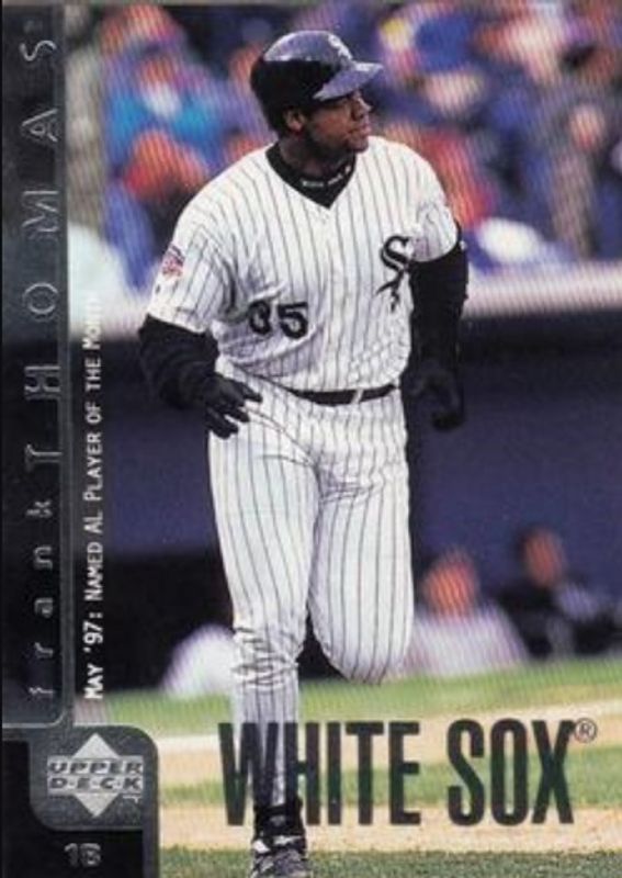 The Frank Thomas 1998 Upper Deck #330 Base card is 1 of 24 Frank Thomas' card variations in the 1998 Upper Deck set being tracked by Sports Card Investor, including #459 Base, #143 Base, #607 Base, #18 10th Anniversary Preview, and #18 10th Anniversary Preview Edition Retail.
