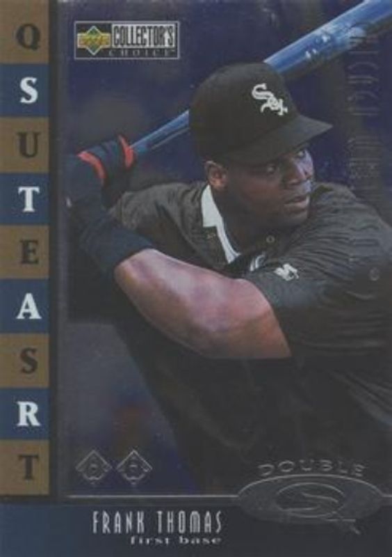 The Frank Thomas 1998 Upper Deck Collector's Choice #SQ5 StarQuest Double card is 1 of 22 Frank Thomas' card variations in the 1998 Upper Deck Collector's Choice set being tracked by Sports Card Investor, including #60 Base, #60b Base, #8 Base, #8b Base, and #8 Cover Glory 5x7.