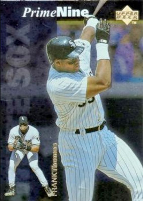 The Frank Thomas 1998 Upper Deck #PN17 Prime Nine card is 1 of 24 Frank Thomas' card variations in the 1998 Upper Deck set being tracked by Sports Card Investor, including #459 Base, #143 Base, #330 Base, #607 Base, and #18 10th Anniversary Preview.
