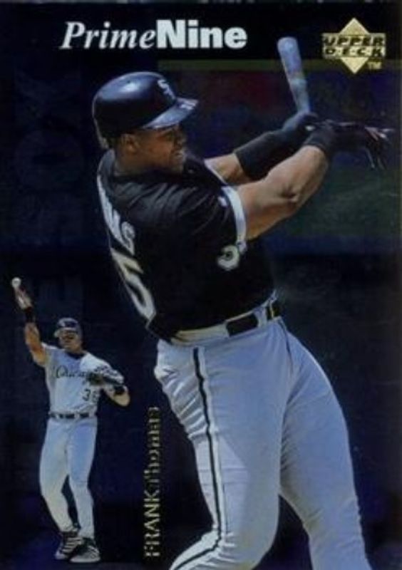 The Frank Thomas 1998 Upper Deck #PN20 Prime Nine card is 1 of 24 Frank Thomas' card variations in the 1998 Upper Deck set being tracked by Sports Card Investor, including #459 Base, #143 Base, #330 Base, #607 Base, and #18 10th Anniversary Preview.
