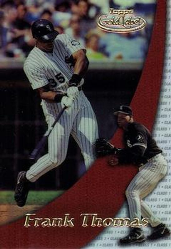 The Frank Thomas 2000 Topps Gold Label #40 Base card is 1 of 6 Frank Thomas' card variations in the 2000 Topps Gold Label set being tracked by Sports Card Investor, including Class 2, Class 3, Class 1 Gold /100, Class 2 Gold /100, and Class 3 Gold /100.