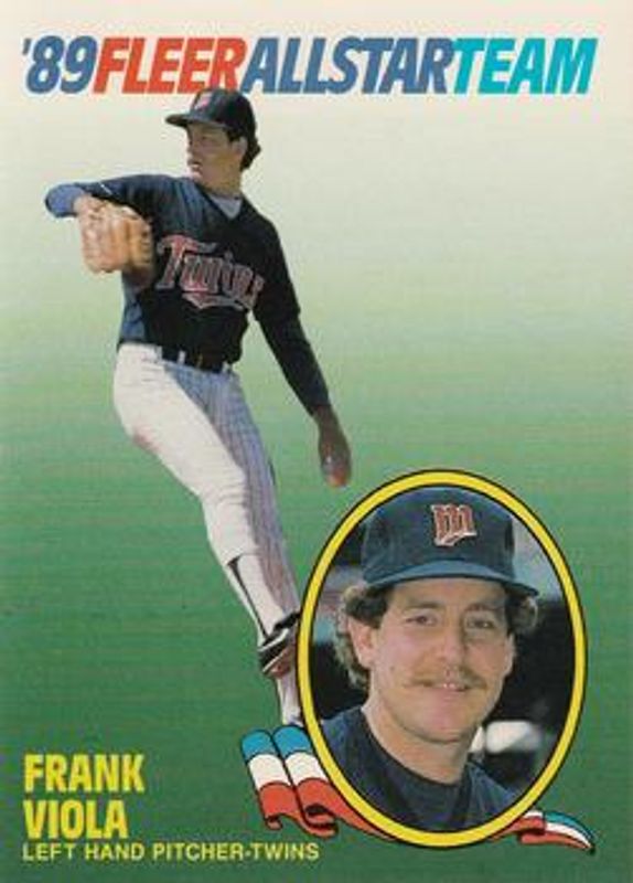 The Frank Viola 1989 Fleer #12 '89 Fleer All-Star Team card is 1 of 2 Frank Viola's card variations in the 1989 Fleer set being tracked by Sports Card Investor, including Base.