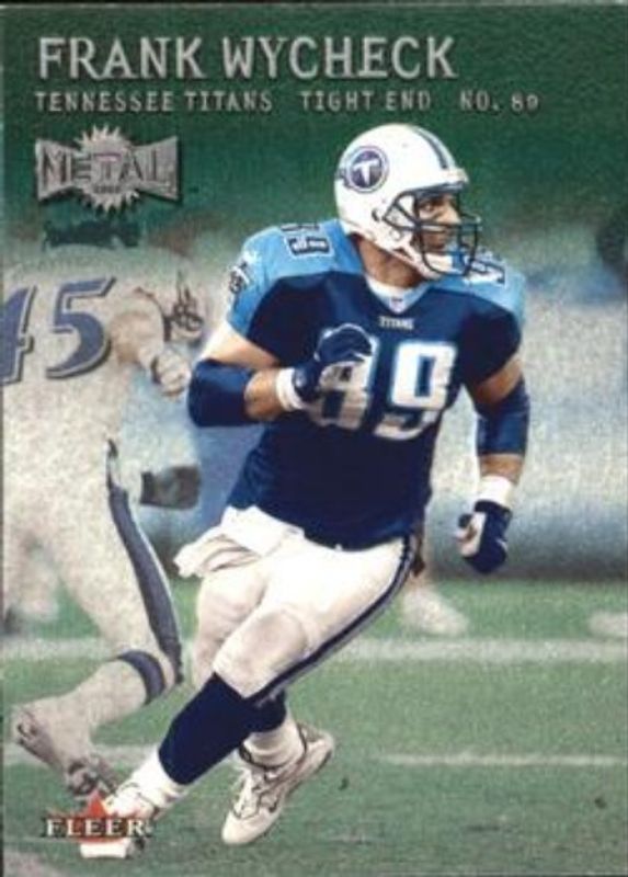 The Frank Wycheck 2000 Metal #118 Emerald card is 1 of 2 Frank Wycheck's card variations in the 2000 Metal set being tracked by Sports Card Investor, including Base.