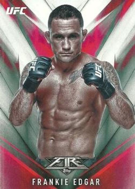 The Frankie Edgar 2017 Topps Fire UFC #16 Base card is 1 of 8 Frankie Edgar's card variations in the 2017 Topps Fire UFC set being tracked by Sports Card Investor, including Red Hot /142, Blue Flame /25, Inferno /1, Fired Up, and Autographs /149.