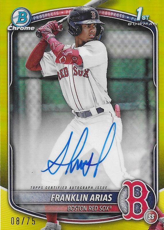 2025 Bowman Chrome 1st Franklin Arias Yellow Refractor Auto #/75 Red Sox