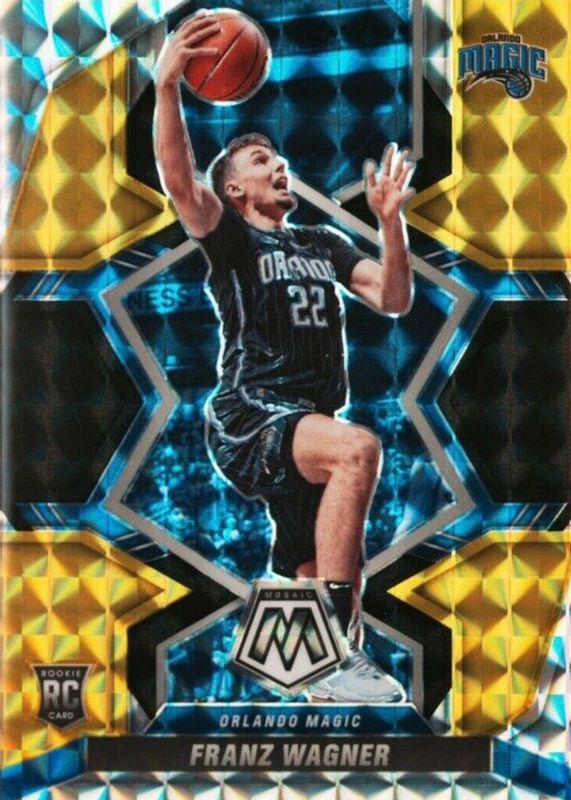 This card is 1 of 70 Franz Wagner's card variations in the 2021 Mosaic set being tracked by Sports Card Investor, including Base, NBA Debut, Anniversary Edition, Choice Red & Green, and Fast Break.