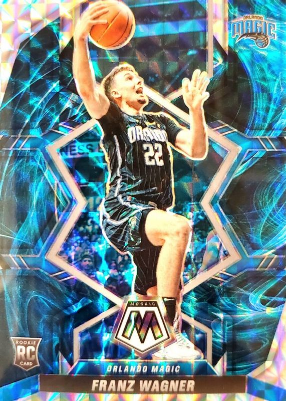 This card is 1 of 70 Franz Wagner's card variations in the 2021 Mosaic set being tracked by Sports Card Investor, including Base, NBA Debut, Anniversary Edition, Choice Red & Green, and Fast Break.