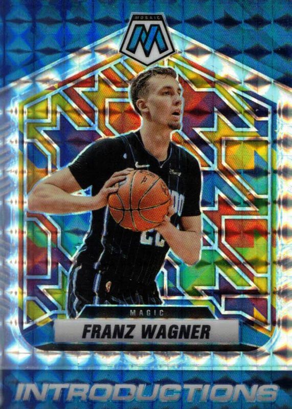 The Franz Wagner 2021 Mosaic #5 Introductions - Silver Mosaic Rookie card in Raw condition has not changed in price in the last 30 days and was last sold for $0.99 .