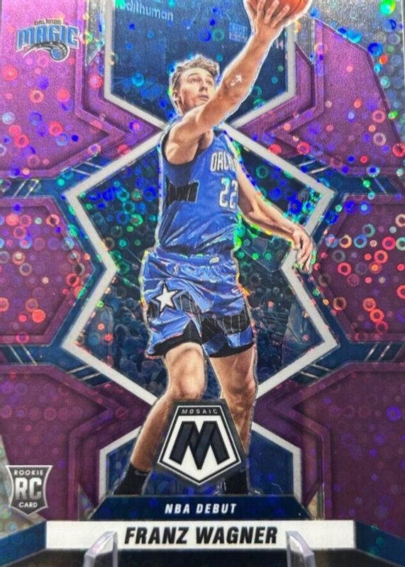 The Franz Wagner 2021 Mosaic #267 NBA Debut - Fast Break Purple /50 Rookie card in Raw condition has not changed in price in the last 30 days and was last sold for $22.49 .