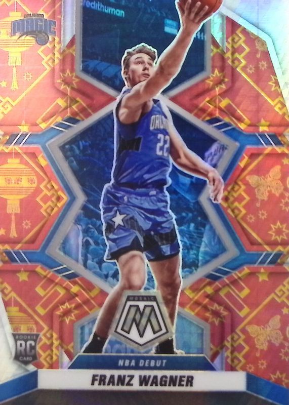 The Franz Wagner 2021 Mosaic #267 NBA Debut - Lucky Envelopes /8 Rookie card in Raw condition has not changed in price in the last 30 days and was last sold for $111.00 .