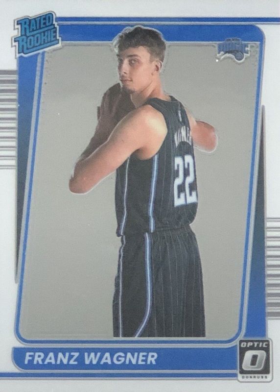 The Franz Wagner 2021 Optic #185 Base Rookie card in Raw condition has moved up $1.25 (+125%) in the last 30 days and was last sold for $2.25 .