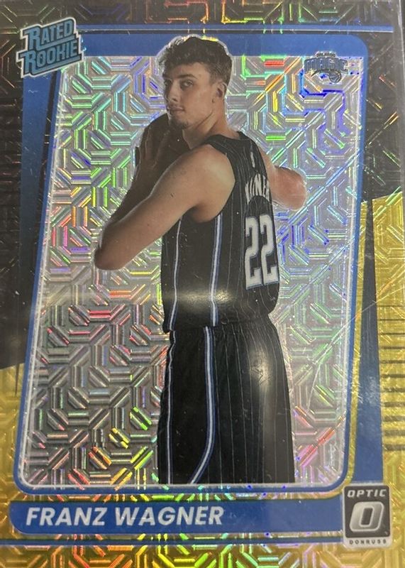 The Franz Wagner 2021 Optic #185 Choice Black & Gold /8 Rookie card in Raw condition has not changed in price in the last 30 days and was last sold for $471.00 .