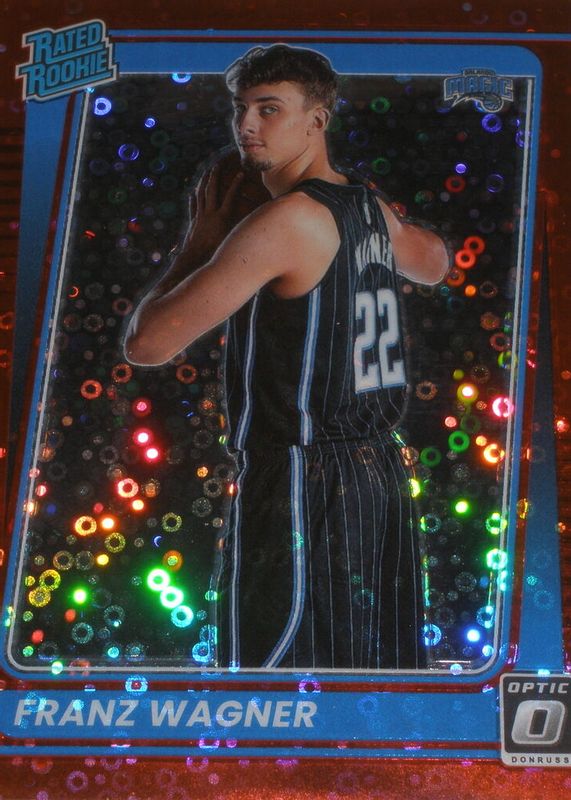 This card is 1 of 44 Franz Wagner's card variations in the 2021 Optic set being tracked by Sports Card Investor, including Base, Blue Pulsar, Blue Velocity, Checkerboard, and Choice Red & Green.