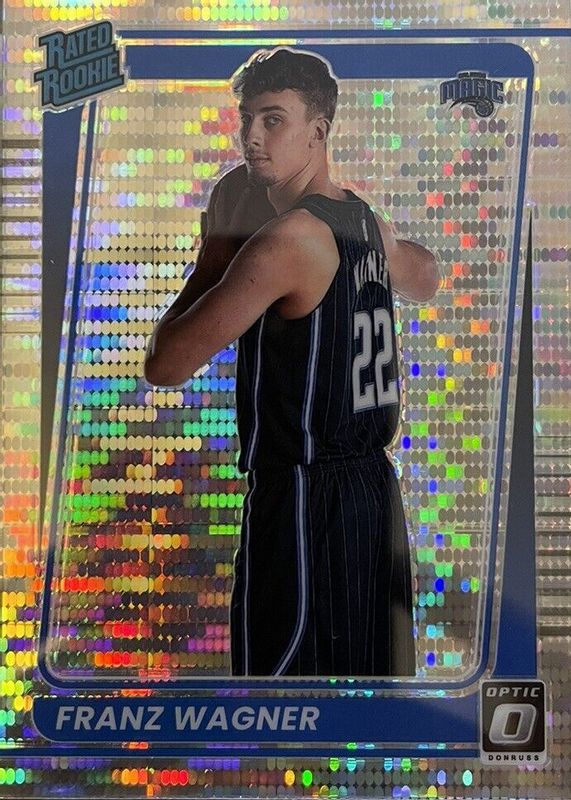 This card is 1 of 83 Franz Wagner's card variations in the 2021 Optic set being tracked by Sports Card Investor, including Base, Blue Pulsar, Blue Velocity, Checkerboard, and Choice.