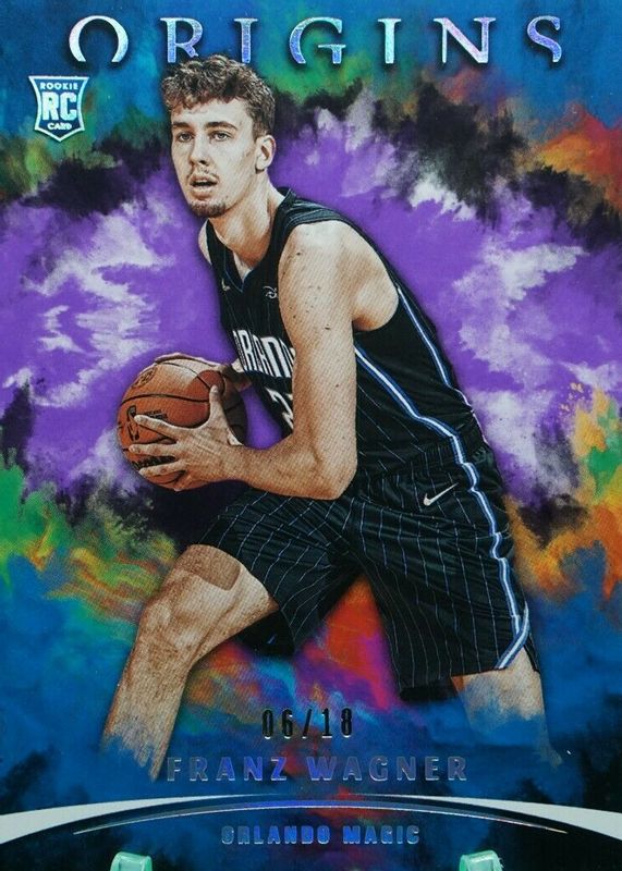 This card is 1 of 39 Franz Wagner's card variations in the 2021 Origins set being tracked by Sports Card Investor, including Base, Red, Blue /99, Orange /75, and Pink /60.