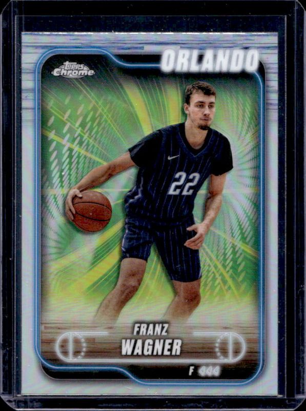 The Franz Wagner 2024 Topps Chrome #93 Refractor card is 1 of 46 Franz Wagner's card variations in the 2024 Topps Chrome set being tracked by Sports Card Investor, including Base, Blue Basketball Refractor, Magenta Refractor, Negative Refractor, and Pink Basketball Refractor.