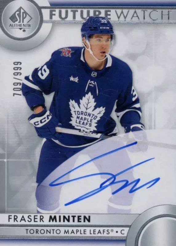 The Fraser Minten 2023 SP Authentic #168 Future Watch Auto /999 Rookie card in Raw condition has moved down -$5.67 (-11.8%) in the last 30 days and was last sold for $42.33 .