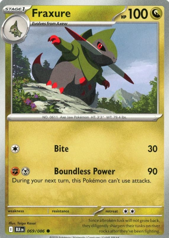 Best Prices Available For Sale of Fraxure 2025 Scarlet & Violet: Black Bolt #069/086 Base