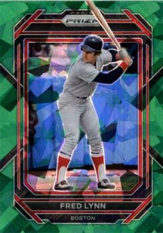 The Fred Lynn 2023 Prizm #212 Green Ice card is 1 of 26 Fred Lynn's card variations in the 2023 Prizm set being tracked by Sports Card Investor, including Base, Blue Ice, Giraffe, Hyper, and Ice.