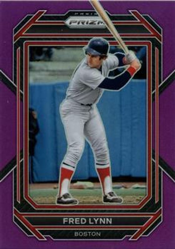 The Fred Lynn 2023 Prizm #212 Purple /99 card is 1 of 26 Fred Lynn's card variations in the 2023 Prizm set being tracked by Sports Card Investor, including Base, Blue Ice, Giraffe, Green Ice, and Hyper.