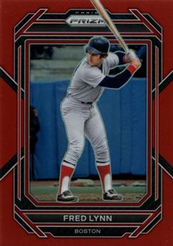 The Fred Lynn 2023 Prizm #212 Red /199 card is 1 of 26 Fred Lynn's card variations in the 2023 Prizm set being tracked by Sports Card Investor, including Base, Blue Ice, Giraffe, Green Ice, and Hyper.