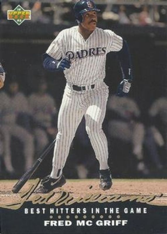 The Fred McGriff 1992 Upper Deck #T8 Ted Williams' Best card is 1 of 6 Fred McGriff's card variations in the 1992 Upper Deck set being tracked by Sports Card Investor, including #33 Base, #344 Base, #33 Gold Hologram, #344 Gold Hologram, and #HR10 Homerun Heroes.