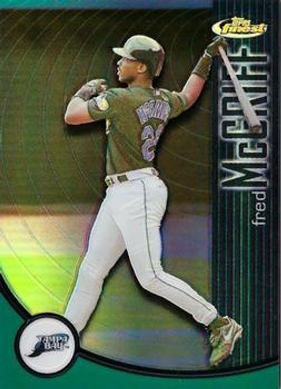 The Fred McGriff 2001 Topps Finest #4 Refractors /499 card is 1 of 2 Fred McGriff's card variations in the 2001 Topps Finest set being tracked by Sports Card Investor, including Base /999.