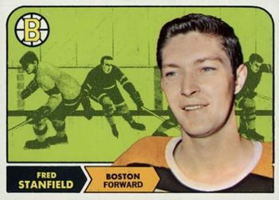 Other popular players in the 1968 Topps set include Ed Hoekstra, Ab McDonald, Alex Delvecchio, Andre Boudrias, and Andy Bathgate.