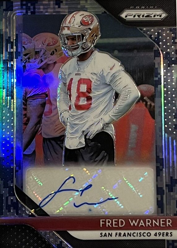 The Fred Warner 2018 Prizm #RA-FW Rookie Autographs - Camo (/25) card in Raw condition has not changed in price in the last 30 days and was last sold for $256.00 .