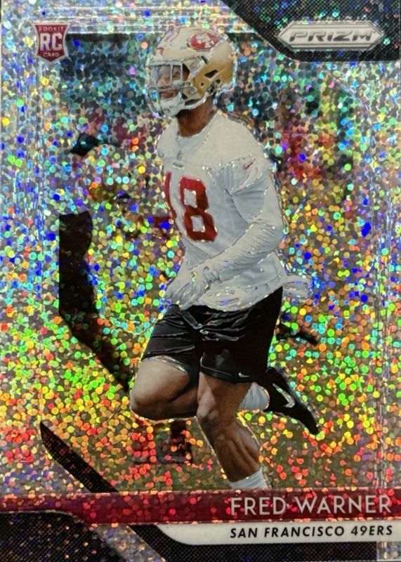 This card is 1 of 40 Fred Warner's card variations in the 2018 Prizm set being tracked by Sports Card Investor, including Base, Disco, Green, Lazer, and Neon Green Pulsar.