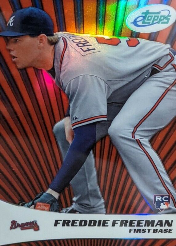 The Freddie Freeman 2011 eTopps #2 Base (/1499) Rookie card in Raw condition has not changed in price in the last 30 days and was last sold for $115.00 .