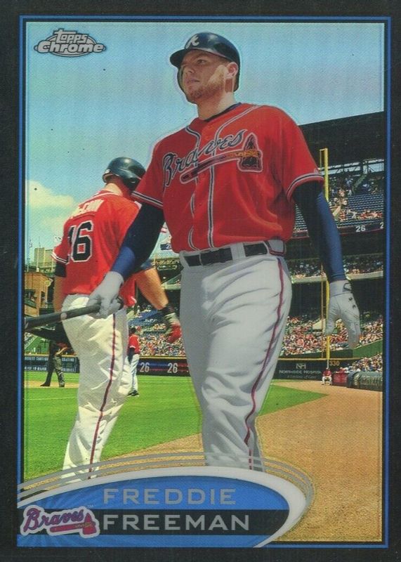 This card is 1 of 11 Freddie Freeman's card variations in the 2012 Topps Chrome set being tracked by Sports Card Investor, including Orange Refractor, Purple Refractor, Refractor, X-Fractor, and Blue Refractor /199.